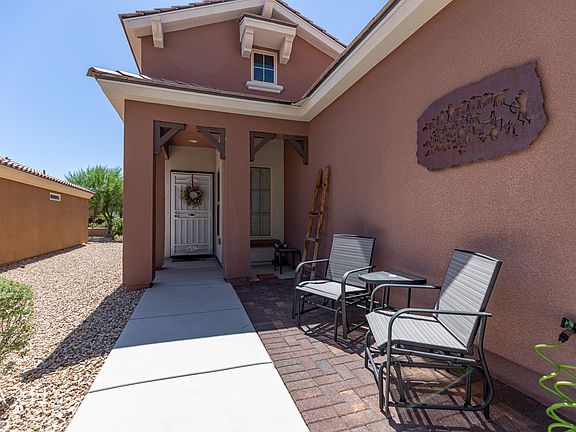 Enjoy this beautifully decorated Aster model home in the carefree Sun City 55+ Adult Community. Walk into a spacious great room, plenty large for your family gatherings or any other get-together, and flows into a spacious kitchen that boasts granite counter tops, a full-length raised breakfast bar, and stainless steel appliances. The French doors open to a large den/office could be a 3rd Bedroom. The large master bedroom provides ample space for your large bed as well as other furniture. Also enjoy the make-up counter in the master bathroom. In the evening, you can sit in the covered back patio that had added privacy with the foliage on all sides. Included is a new water heater and water softener as well as an Irrigation System that's only 1 yr old, The refrigerator, washer, dryer and back patio set are all included. The care-free living of Sun City includes the Pioneer Recreation Center that offers indoor and outdoor swimming pools, a huge exercise room, pool tables, a library and a crafts room. Enjoy golf privileges, an 18-hole putting course, pickleball, bocce ball, and your choice of numerous clubs and activities to join. See all the pictures! The hospital is also only minutes away. A current Choice Home Warranty will be transferred to the buyer at closing (warranty expires 5/28/20).