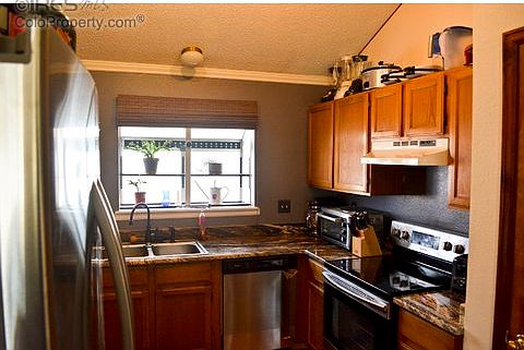 Bright open floorplan in a quiet neighborhood close to schools, shopping, parks, trails and restaurants. Large Master bdrm w/bath and walk-in closet. Newer stainless steel appliances, granite counter and greenhouse window. Newly remodeled bathroom. LR has vaulted ceilings. Newer water heater. Newly painted exterior. Elevated deck overlooks a large, fully fenced yard, complete w/many berry bushes. Insulated mechanics garage w/overhead fluorescent lights and 220V wiring.