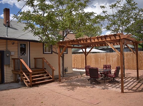 Fully furnished newly restored Downtown house has 2 bedrooms, 2.5 baths 1500 sqft. is right in the heart of downtown Grand Junction close to CMU, St. Mary's hospital, Lincoln park/Stocker stadium and walking distance to downtown. -FULLY FURNISHED -Open Floor plan -Harwood floors -2 Master bedrooms/bathrooms -enclosed front porch -large kitchen -back patio covered with pergola -central air -forced air heat -appliances-refridgerator, oven/stove top, dishwasher, W/D -6,9-12 month lease -security deposit $2000 -utilities not included -one small dog upon approval It is also minutes from the award winning Redlands Mesa golf course, the Tabaguache trail system, Mesa County Public library, and Two Rivers convention center. It is also equal distance from Palisade's wine tasting and peach country as it is to Fruita's world class mountain biking. -FULLY FURNISHED (if desired it can be unfurnished) -6,9-12 month lease -security deposit $2000 -utilities not included -Fully Furnished -xeriscape- renter is responsible for weeds -no smoking of any kind on the property