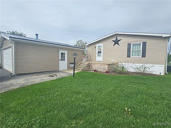 Charming manufactured home! 3 bedroom 2 full baths with vinyl flooring and carpet throughout. This home has been very well maintained. Offers washer & dryer hook up, sky lighting in the bathroom while adding great light to the space. Gas range, stainless steel appliances. Outside you have a newly added patio for entertaining or just to relax. 2 space garage and for extra storage there are 2 sheds. Plenty outdoor space to enjoy. This home is waiting for you.