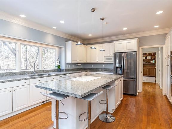 Walkout two story in prestigious Woodlands. Situated on cul-de-sac & nestled on a .86 private wooded lot w/ trail accessibility! 2sty entry, formal dining, butler's pantry. plantation shutters. Large remodeled open kitchen w/granite counters, abundance of cabinetry, huge granite island, double ovens & triple pantry. Additional dine in area w/ walkout to composite deck. 1st floor LR has fireplace, open floor plan, w/ large windows & gorgeous views. Study with plenty of storage and natural light. Large laundry room w/ sink & a guest powder. Open stairway up to a MBR suite, remodeled en suite bath. 3 additional bedrooms, 2 remodeled baths. Lower level walkout with another family room, bedroom, bar, full bath and fireplace