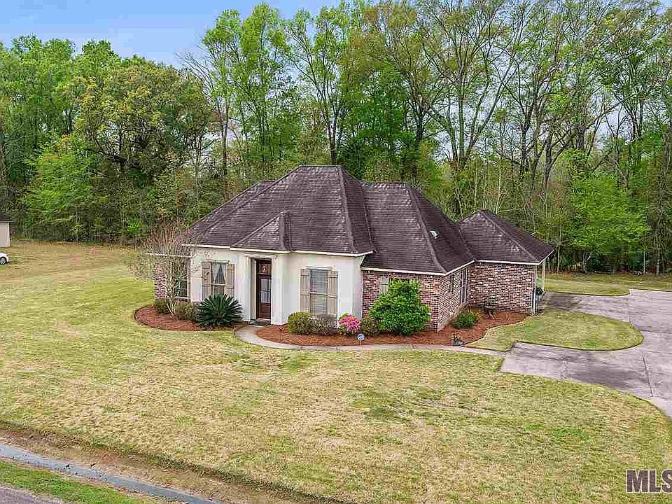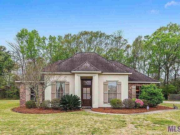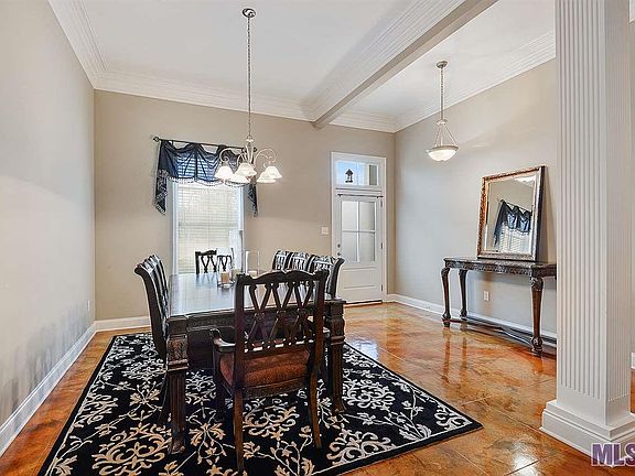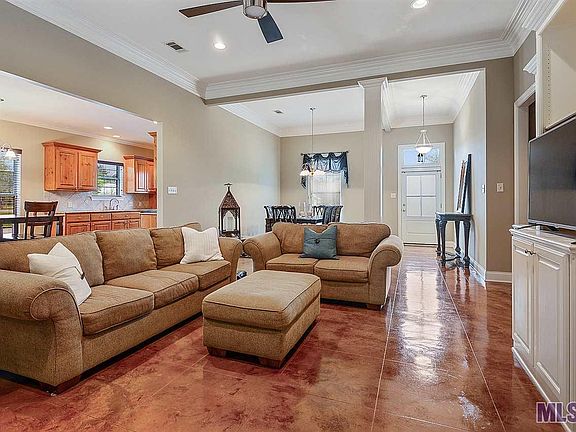 Looking for acreage? This home sits on over half acre (.63) surrounded by beautiful homes and rural setting. Entering the home you have high ceilings with a panoramic view of the foyer, dining and living room. The beautiful stained and scored flooring runs thru out the home except the bedrooms. The living room has gas log fireplace with built-in cabinets for entertainment center. The kitchen/breakfast area has cypress cabinets, stainless appliances, gas range, microwave and built in pantry. The master bathroom has separate shower, separate jetted tub, and sep. closets. The laundry room is spacious with upper cabinets and lower sink cabinet. Other amenities include: Crown Molding, Extended patio, nice landscaping, freshly painted stucco and shutters.