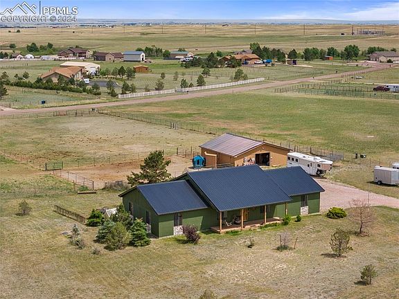 Welcome to the enchanting Latigo Equestrian Community, where this charming home brings together the perfect blend of comfort and countryside living. Situated on over 5 acres of land, this retreat offers 3 bedrooms and 2 baths, providing the ideal space you've been longing for. Step inside and be greeted by an inviting great room, complete with a stunning stone gas fireplace. The master bedroom not only features two walk-in closets, but also an attached bath with a luxurious garden/jetted tub. The kitchen area is a true delight, boasting a gas range and a farmhouse sink and a conveniently located attached laundry room. Imagine starting your day by sipping your morning coffee on the front porch, surrounded by the tranquility of the breathtaking views. Alternatively, you can create unforgettable memories by hosting gatherings on the spacious back porch. The property is thoughtfully equipped with a drip system and newly planted trees, ensuring a lush and vibrant landscape. And for those with a love for horses, you'll discover a 36x36 barn with 4 box stalls, automatic water with a no-freeze feature, a 12' alley, and ample space for tack and hay storage. If you're someone who enjoys working on projects, the oversized garage with shelving and benches will fulfill your dreams. And for entertainment options, the nearby Latigo Equestrian Center offers a restaurant, bar, and a variety of exciting events and shows throughout the year. This property truly represents the epitome of peaceful rural living within a close-knit community, while still providing convenient access to amenities. Welcome home to the best of Colorado living!