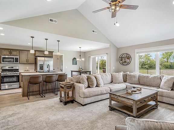- Ceiling Fan(s), Vaulted Ceiling(s), Walk-In Closet(s), Laminate Counters, Eat-in Kitchen, Entrance Foyer, Kitchen Island, Open Floorplan, Pantry, Split Br Floor Plan, Double Vanity, Main Level Bedroom Suite, Great Room