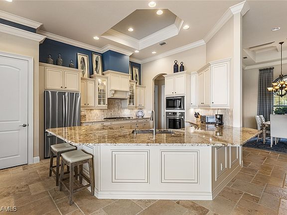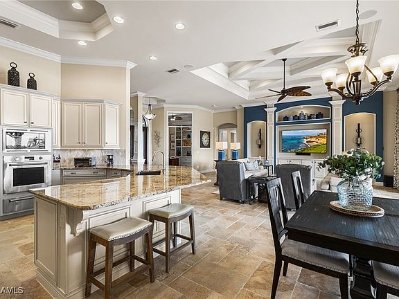 Welcome to Verandah! Located in the prestigious Whispering Oaks subdivision, this 2016 Cascade model by Royal Corinthian exudes luxury and sophistication. From the moment you arrive, you’ll be captivated by the meticulous attention to detail and thoughtful upgrades that elevate this home to an unmatched standard of living. The exterior is a masterpiece with a full lawn upgraded to lush, low-maintenance zoysia grass and a brand-new hybrid roof that blends style and durability. Hurricane-proof insulated garage doors add functionality and peace of mind, while the three-car garage stands out with a built-in workshop, extra storage, and a two-zone air-conditioning system. A tankless water heater and elevated full-home generator offer modern conveniences, while impact windows and sliders throughout ensure safety, energy efficiency, and year-round comfort. Inside, the home is an elegant retreat. The main living areas feature upgraded travertine tile flooring, while plush upgraded carpets add warmth and comfort to the bedrooms. Coffered volume ceilings and crown molding lend a sense of grandeur to every room, and additional outlets in the living room floor enhance convenience and versatility. The dedicated office/den has been custom-designed with high-end cabinetry, providing a perfect space for work or study. The home offers three spacious bedrooms, each with upgraded custom closets, and four beautifully designed bathrooms (three full and one half). The primary suite is a sanctuary of luxury with impeccable finishes and ample space. Every bathroom has been thoughtfully designed with premium fixtures and finishes, combining functionality and style. The kitchen is a chef’s dream, featuring upgraded cabinetry and stunning granite countertops. Equipped with top-of-the-line stainless steel appliances, including Wolf, Viking, and Bosch, this kitchen combines beauty and practicality, making it perfect for both everyday use and entertaining. Step outside to experience one of the most spectacular outdoor living areas you’ll ever encounter. The lanai is an entertainer’s paradise, complete with a fully upgraded outdoor kitchen that includes a 36-inch grill, a built-in fireplace, and a surround sound system with integrated speakers. The salt pool and spa, both enhanced with LED lighting, offer a sun ledge for relaxation and a serene view of the picturesque golf course. Storm-smart hurricane fabric shutters provide additional protection for this stunning outdoor space, ensuring it remains a haven in any weather. Additional upgrades throughout the home include a central vacuum system, custom cabinetry in multiple spaces, and two air-conditioning units that ensure comfort in every season. This home represents the pinnacle of Verandah luxury living, seamlessly combining sophisticated design, modern convenience, and exquisite craftsmanship. Don’t miss your opportunity to own a masterpiece in one of the area’s most desirable communities. Schedule your private tour today.