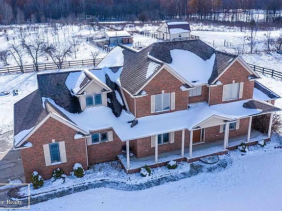 Better Homes and Gardens featured home! This 2,892 sqft 4 bed 3.5 bath home has plenty to offer every one in the family. From trail rides on your own 30 acres outside, to a relaxing natural fire inside. The 40x60 cemented pole barn allows for ample storage of all your family toys and is even plumbed for a restroom with its own septic tank. Other outbuildings include a 25x30 horse barn with hay loft storage, along with lean to a separate lean to in the 15 acres fenced pasture that surrounds apple orchard. The back 10 acres is a combination of woods and open areas surrounded by 160 acres of untouched habitat with neighbors that belong to QDMA for prime hunting. This 2005 home was built for comfort and efficiency from its complete brick exterior to the 2019 high efficiency geothermal heating/cooling system. The country kitchen and open concept allows comfortable living space even during the holidays. Showings prior to an offer will only be by reviewing the video tour and the photos.