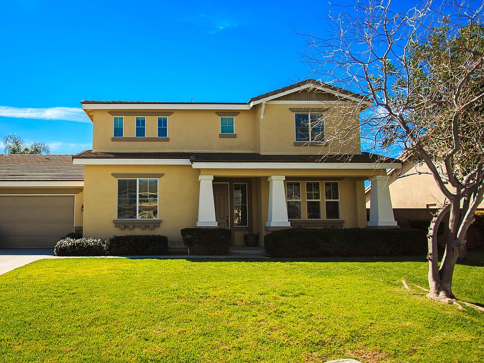 Fantastic layout in the beautiful city of Eastvale. This home features 5 bedrooms, 3 bathrooms, 4 car garage, wood flooring throughout the 1st floor, fantastic open kitchen with large island, custom built in cabinets in laundry room, kids bathroom, and garage. One bedroom downstairs, bonus room upstairs, good size side yard. Freshly painted and professionally cleaned, it is ready for the right family to just move right in. No HOA, tax rate is 1.718% and its 5 mins to elementary and Harada Park. Don't miss out!