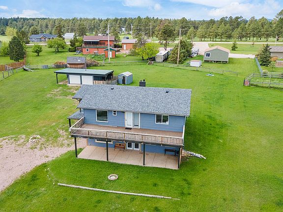 Listed by Cody Brown, Engel & Voelkers Black Hills, 402-910-3553. Stop what you're doing and check this one out! Nestled between Rapid City and Nemo, SD, this home offers breathtaking forest views on a 1-acre lot. The main level features a kitchen with a small pantry, a dining room, a living room, and a primary suite with a walk-in closet, dual vanity, and a walk-in tiled shower. Step outside to a concrete patio for outdoor relaxation. Upstairs boasts a loft/second living area with deck access, three additional bedrooms, a full bath, and a conveniently located laundry room. The property also includes a two-stall detached garage, a large outdoor shed, a chicken coop/run, and a garden on the lot's corner. Don't miss out on this unique opportunity!