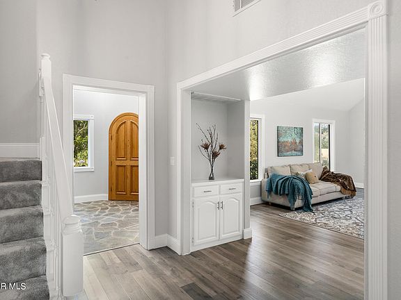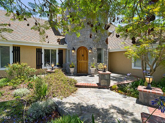 Set on 2.45 acres of prime horse property in exclusive Hidden Meadows, this immaculate Santa Rosa Valley residence is a stunning example of traditional English Tudor style! Stone columns anchor the iron gates that secure your long, winding driveway. At the end of a flagstone path lined by a lushly landscaped front yard, you'll be greeted by a distinctive castle tower entry. Inside, discover 3,366 sq ft of open, inviting interior, all designed and finished to a very high standard. Offering an exceptional lifestyle in an ideal location overlooking the Santa Rosa Valley, this could be the private estate you've long dreamed of calling home. Large windows, hardwood-style flooring, and soaring ceilings in many rooms lend a timeless appeal to the main gathering areas. Avid entertainers will have ample space to host lavish celebrations or intimate parties. Perhaps the best room in the house, your kitchen is almost a work of art, framed from above by a wood grain tray ceiling adorned with recessed lighting. Anyone from a culinary novice to the most-demanding chef will appreciate having the tools to create truly memorable meals for groups of all sizes. Abundant cabinetry provides storage for all of your gadgets, brilliant white countertops extending to your island offer prep space, plus you'll have modern stainless steel appliances. An adjacent sunlit dining nook has bay window bench seating and outdoor access. At the end of the day, you can retire to your primary bedroom and enjoy the pleasure of a soothing massage tub in its ensuite. It also has a frameless glass shower enclosure and a vanity with convenient dual sinks. Outside, you'll have all the necessary facilities to take care of your horses, including a corral, run-in shed, and an expansive arena. The backyard is beautifully terraced, and its layout is fabulous for alfresco entertaining. Private and secluded, it has a free-form pool and spa, surrounded by a patio with a variety of shaded areas where visitors can gather for drinks, conversation, or weekend cookouts. A garage affords you secure parking for three vehicles, plus there's a long list of other must-have benefits and amenities that make this abode one you'll want to be sure to see. Since it's just a short drive from both Thousand Oaks and Simi Valley, you'll have plenty of attractive shopping and restaurant choices available. The Santa Rosa Technology Magnet School is less than a mile away, and there's easy access to the McCrea Wildlife Refuge. Ready to make this enviable life of leisure all yours? Come take a tour before it's gone for good!