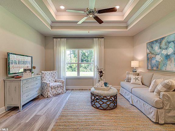 Welcome to this RHETT home with pastoral VIEWS in sought after Fairhope Falls! This 4 bed/2 bath floor plan offers 1,835 square feet of open living space with plenty of natural light. The spacious chef's kitchen opens into large dining/living space and showcases painted cabinets, granite countertops, stainless steel appliances, and a generous pantry. The primary bedroom boasts dual vanity sinks, Garden Tub, separate shower and spacious walk-in closet. All three bedrooms have sizeable closets as well as two extra linen closets in the hall. This brand new energy efficient home comes with thermal doors, Energy Star rated double pane windows, 14 SEER Carrier Heat Pump and is being built to GOLD Fortified Certification. Home also includes 'Home is Connected' (SM) Smart Home package, a 1-year builder's and a 10 year structural warranty. Fairhope Falls is conveniently located just minutes from charming downtown Fairhope, shopping, restaurants, award winning schools, and a quick drive to beautiful Gulf beaches. One-of-a-kind community amenities include TWO resort-style pools, playground, kayak launch area on Fish River, lakes, hiking and biking trails and more! Seller will contribute up to $3,000 toward closing costs with preferred lender. Photos are of a similar and not necessarily of subject property, including interior and exterior colors, options, and finishes. Estimated completion- August 2023.