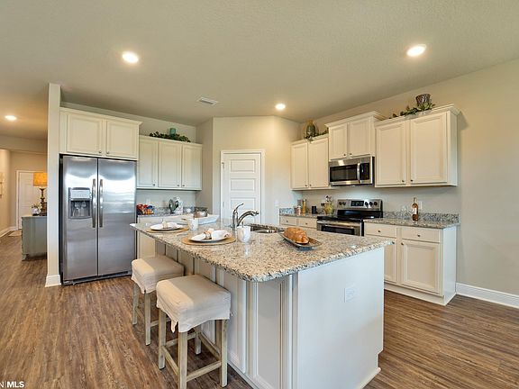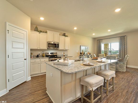 Welcome to the open and spacious 4 bedroom, 2 bath, 2-car garage DELRAY Plan with covered front porch entry in fast-selling Fairhope Falls. The light and bright kitchen, ideally situated at the heart of the home, overlooks the dining area and great room while having a view to the covered back porch and community lake. The well-appointed kitchen boasts an island with bar seating, painted cabinets, granite, and stainless steel appliances, making entertaining a breeze. The en-suite primary bedroom, located at the back of the house for privacy, features a garden tub, separate shower, double vanities, and spacious walk-in closets providing ample space for storage. Two additional bedrooms and one full bath are located at the front of the home. Home also features a versatile flex room that can be utilized as an office, den, or a fourth bedroom. Brand new and energy efficient, this Gold Fortified home comes with “Home is Connected” Smart Home package, DEAKO switches, a 1-year builder warranty and 10-year structural warranty. Conveniently located off Hwy 104, Fairhope Falls is just minutes from charming downtown Fairhope, restaurants, shopping, award-winning Fairhope schools, and close to beautiful white sand beaches. One-of-a-kind community amenities include TWO resort-style pools, kayak launch area, playground, hiking and biking trails, lakes, and much more! Photos are of similar home and not necessarily of subject property, including interior and exterior colors, options, and finishes. Up to $3,000 toward closing costs with preferred lender. Estimated completion - July 2023.