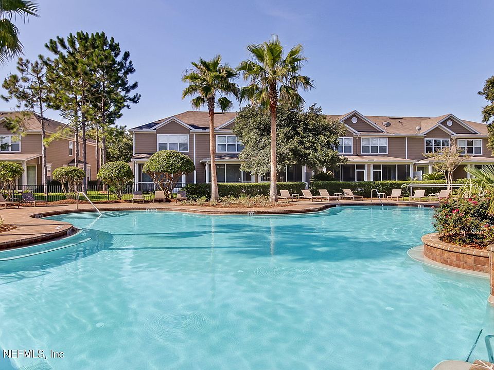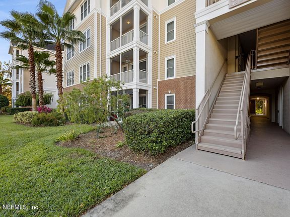 This premium top-floor corner unit with elevator access offers the rarest find in the coveted gated community of Wolf Creek. It delivers quiet and unparalleled privacy with no-one living above you boasting soaring ceilings, windows galore and panoramic views enjoyed from nearly every room and from your enlarged balcony. This unit has been meticulously maintained and is turn key and move in ready. Upgrades include fresh paint throughout, new Corian countertops and tasteful backsplash, brand new range, disposal & faucet, upgraded cabinetry and new hardware, premium 18X18 tile & beautiful engineered wood flooring-no carpet! Both baths feature newly installed glass enclosures. Other features include ceiling fans and fluorescent lighting installed in every room, built in surround system for entertaining, custom built in shelving in the pantry, laundry room and in all the closets. The brand new roof, Trane A/C system and double pane windows provide peace of mind and significant energy savings for years to come. Live the resort lifestyle with immediate access to outstanding amenities including a luxury pool, clubhouse, car wash station and fitness center. The HOA fee includes water, sewer and trash providing unbeatable value for it's residents. This location is second to none- it sells itself! You are perfectly placed minutes to the beach, Mayo Hospital, UNF, FSCJ, St John's Town Center, top rated schools, dining/shopping/entertainment and recreational parks. Don't miss your chance to secure this low maintenance, beautifully updated unit!
