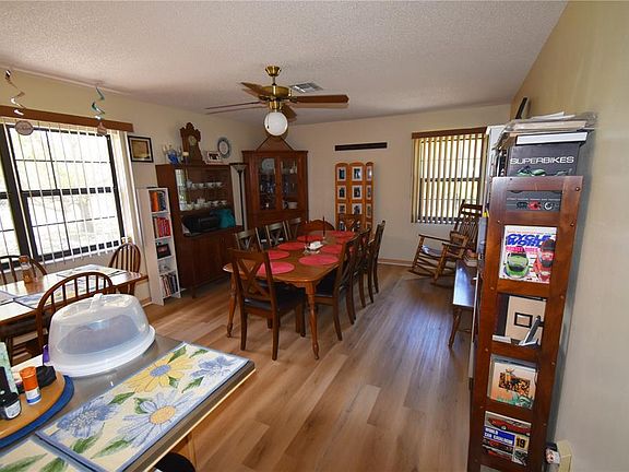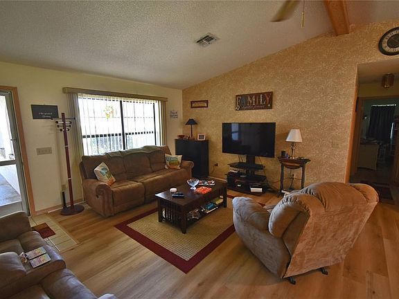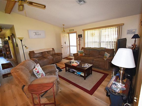 Welcome home.. to this cute and spacious 2 bedroom, 2 bath home just outside of East Linden estates. This corner lot home is located in a very quite neighborhood and has NO HOA or CDD. You can park your RV along the home and power it with 50 and 30 amp outlets. This home features a 1 year old roof and new flooring everywhere. All appliances in the kitchen stayin, including the reverse osmosis system under the kitchen sink, as do the washer and dryer. The Drainfield was just replaced in february of this year and the septic was pumped. As you enter the home you will notice the vaulted ceiling in the Living room, the french door from the dining room leads out to a screened and covered lanai, perfect for relaxing. a large family room is located off the kitchen and the laundry room has a utility sink and lots of storage room. a two car, divided garage can be used for cars or one of the bays as a workshop. lots of possibilities here. Make an appointment today before its gone!