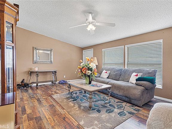 Charming 4-bedroom, 2-bathroom Mobile Home on Permanent Foundation with Modern Updates! This spacious 2002 mobile home is set upon perm foundation with a 2-car detached garage. This property offers an ideal blend of comfortable living and convenience. Split floor plan, large primary suite, with TV area or office, with en suite bathroom and walk in closet. 2 additional bedrooms have wardrobe closets. Ample storage with 2 extra sheds, free standing spa with privacy screening, built in BBQ, and covered patio make a perfect area for entertaining. Large kitchen with center island and a separate room for laundry, washer, and dryer. Even a freezer will fit in there. Recent upgrades include newer flooring in the living room, family room, hall, and one bedroom. Brand new roof was installed in 2024, giving you peace of mind for years to come. Could be horse property, fence does not include the entire property, section in back could be for barn and arena.
