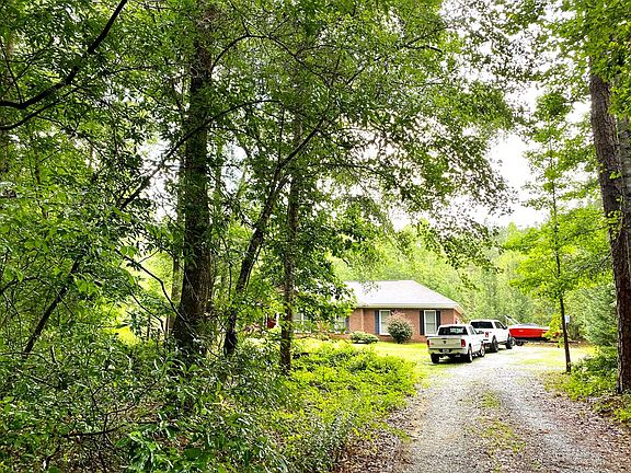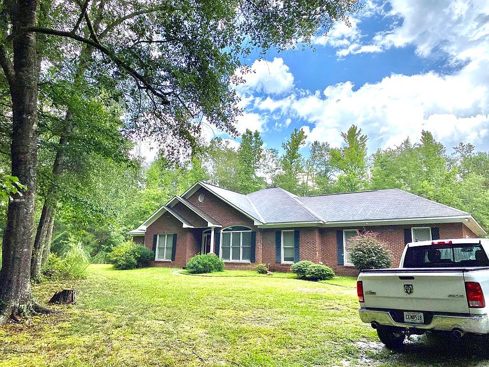 All brick ranch in total seclusion! Long, winding driveway. 3 LG bedrooms with their own baths. Wide hallways. Enter through the foyer w/tile flooring. Bonus/office or formal dining to the right. Walk into a LARGE open family room with fireplace, bookcases, bench seat and tray ceiling. Freshly painted kitchen with lots of cabinets & counters w/LG dining area and bar seating. Screened in back porch. Patio area. Fenced in back yard. Wooded, private front and back yard. Oversized 2 car garage