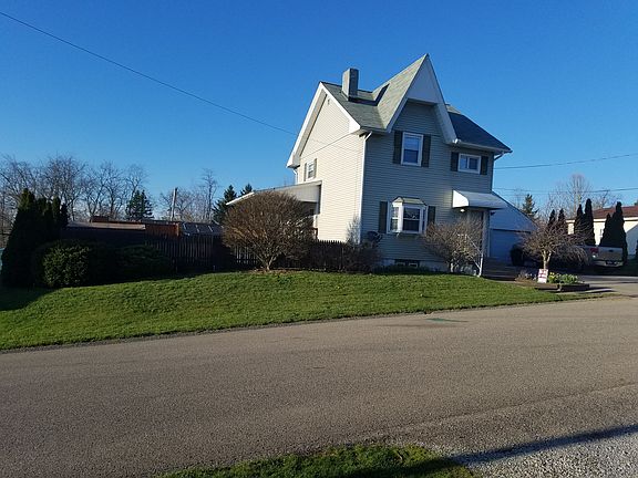 This undeniably distinctive residence radiates a rich turn of the century Victorian faade complimented by a fully renovated modern interior overflowing with charisma. Elongated entry underscored in ceramic tile offers wall to wall closets and transitions into an enviable fully-equipped, eat-in country kitchen showcasing walls of beautiful oak cabinetry, coordinating wood-grain flooring, neutral counters, faux stone backsplash and soft recessed lighting. Kitchen affords a smooth transition through a sliding door onto an entertainment-friendly deck overlooking pool and fenced back yard. Spacious sun-drenched living room is complimented by a bay window and a dramatic projected wall offering ideal placement for the largest of flat screen TVs! Further on, a privately located den is a perfect getaway, or can be easily utilized as a family room or 3rd bedroom. Upstairs, rest and relaxation await in 2 comfortable bedrooms. Master bedroom is underscored in neutral carpeting and is accompanied by his and hers closets. Updated bathroom features oak vanity w/ cultured marble sink, coordinating oak medicine cabinets and separate makeup/prep area w/ large counterspace and additional cabinetry. Neat and clean basement hosts laundry facilities, glass block windows and abundant storage. Other amenities include newer roof and replacement windows, paved driveway, 2-car detached garage and 1-year home warranty.