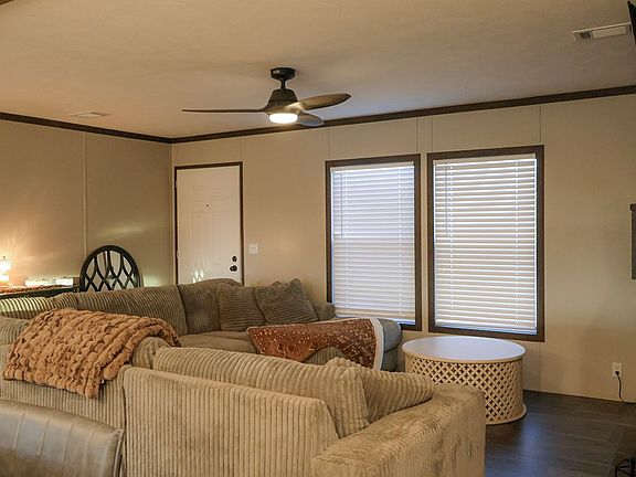 Spacious and inviting, this 4-bedroom, 2-bath mobile home offers 2,016 sq ft of well-designed living space on a peaceful 2-acre tract in the Montalba, TX community. Set in a quiet rural setting, this property blends modern comfort with country charm. Inside, you'll find an open-concept layout featuring a large living area that flows seamlessly into a beautifully updated kitchen. The kitchen boasts ample white cabinetry, a large center island, stainless steel appliances, and stylish pendant lighting, making it ideal for both everyday living and entertaining. The split bedroom floor plan provides privacy, with a generous primary suite offering a relaxing retreat complete with an en-suite bath featuring dual vanities, soaking tub, and separate shower. Three additional bedrooms provide plenty of space for family, guests, or a home office. Outside, the 2-acre lot offers endless possibilities—room for animals, gardening, outdoor gatherings, or simply enjoying the wide-open Texas skies. With plenty of space and a serene setting, this property delivers the best of country living while still being within convenient driving distance to nearby towns.