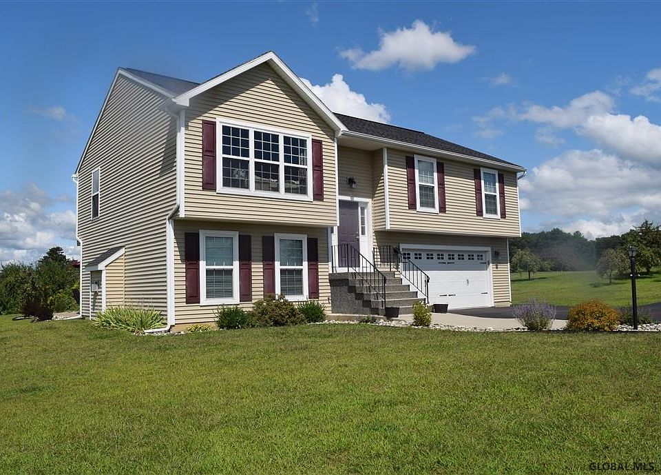 Beautiful country setting for this 6-year-young 3 bedroom, 2 full bath home in Schodack School District just minutes to I-90 Exit 11. Level 1.6 acre lot w/ apple trees, mountain views, and fields across the road. Features a newer patio, paved driveway, gutters, and shed. Offers hardwood floors, bright & open floor plan in main living area with cathedral ceiling and ceiling fan, recessed lighting, and spacious eat-in kitchen plus the dining area. Granite counter & Frigidaire kitchen appliances included. Master BR with walk-in closet, private entrance to upper level full bath with double sinks and ceramic tile floor. Spacious family room with gas fireplace and sliding door to patio and yard, lower level full bath with shower, separate laundry room, and over-sized 2 car attached garage.