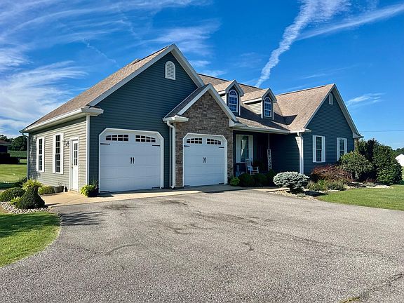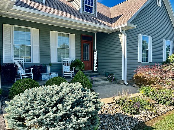 This lovely 3 bed 2 1/2 bath home was built in 2012 and offers a convenient commute to Bloomington from Bedford's East side. Situated on 1 acre, this home boasts of space with roughly 2200 finished square feet and over 800 unfinished Square feet in the basement. The open floor plan between the kitchen and living area offers a great space for entertaining, and the vaulted ceilings throughout the main level add sophistication and an airy feel to the views of the custom kitchen which comes equipped with granite countertops, a side island with seating, and an abundance of maple cabinetry. Additional features include: a spacious primary bedroom with en suite and walk-in closet, beautiful hardwood flooring, and the bonus great room in the basement is the perfect space for movie night! Sellers also just had a $17,000 brand new Presby septic system installed.