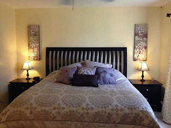 Don't miss out on this absolutely gorgeous town home in Regal Palms at Highland Reserve. This fully furnished 3 bedroom 3 bathroom townhome is zoned for short term rental and ready to go. Tastefully decorated and equipped to appeal to all personalities. Every bedroom has features a flat screen TV and their own bathrooms. The second Master bedroom has a balcony with peaceful views. Located in the popular Regal Palms resort this townhome is only a 15 to 20 minute drive to Disney and in walking distance of the Publix (grocery) shopping center which has restaurants, bank, pharmacy and more. Regal Palms has two heated swimming pools with a lazy river, water slide with waterfalls and indoor and outdoor Jacuzzis. While swimming enjoy the pool side Tiki Bar, sand volleyball courts. There is a fitness center with a sauna and a spa where you can get massages, manicures and pedicures. Don't forget to stop by the market for snack and souvenir needs. Club house features a business center with Wi-Fi internet access and a sports bar and restaurant. Be sure to check out Banana Jacks, the pirate themed fun zoned with games for all ages. For you golfers, you are just across the street from Highlands Reserves public access 72 par golf course. Don't let this one slip thru your hands.