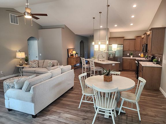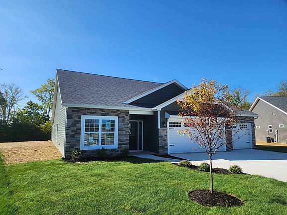 Just completed is the Merlot by Majestic Homes. This very popular Cottage Series home is nestled on a beautiful lot that offers plenty of backyard privacy and is located in The Cottages at Copper Creek. The Merlot offers a beautiful stone front elevation, 3 bedrooms, 2 full baths, a large master suite with a tile shower, an open concept island kitchen to great room, soft close doors & drawers, a sun room, laundry room, large dining area, floor plug in the great room, comfort height toilets, a covered patio, and spacious 3 car garage, and a curb cut. On top of the quality standards Majestic Homes is know for these homes also offer an emphasis on accessibility, quartz or granite kitchen countertops, custom Amish built cabinets throughout, blocking for grab bars in baths, Luxury Vinyl Plank throughout living areas, full ceramic tile shower, 9' ceilings throughout, taller vanities in all baths, LED garage & attic lighting, and more. A few of our other standards include Tru Definition 35 year Shingles, 12" Exterior overhang around the entire perimeter, sod & irrigation in the front yard, Lennox 95% furnace, 50 gallon high efficiency water heater, programmable Wi-Fi Thermostat, 1/2" Spray Foam insulation w/Batt on all exterior living area walls, floored attic, water softener, programmable keypad, closet organizers, over & under LED cabinet lighting in the kitchen, Frigidaire Gallery Series Stainless appliances in the kitchen including refrigerator, Gas log fireplace, and more.