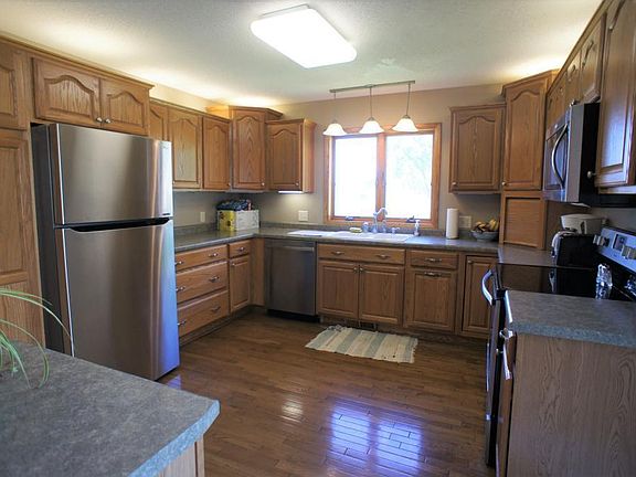 Great 3 BR, 2 Bath split level home in perfect location, close to schools and Lions Park. Hardwood floors in living room and expansive open concept dining and kitchen with plenty of built in cabinetry and extra countertop space (appliances stay). The fenced in, large back yard offers plenty of room to spread out and enjoy the surroundings. Close to H.S., ball games and the newly revamped Lions park. A few short steps to the 2nd floor features the main bath with extra bathroom storage and 3 bedrooms with large closets. The lower level features a large laundry room and storage closet. An extra bonus room could be another family room or large non-conforming bedroom or office. Roof, furnace and water heater all replaced within the last two years! Double car garage features a large insulated storage/workshop. Call for a showing today!