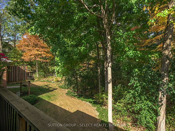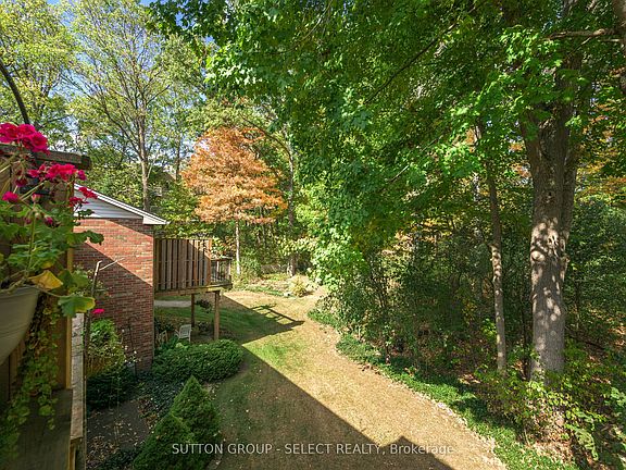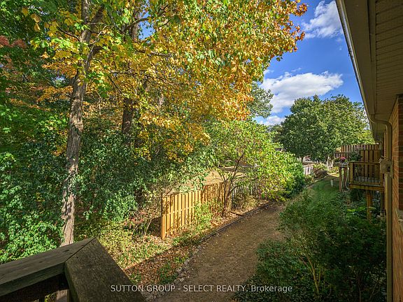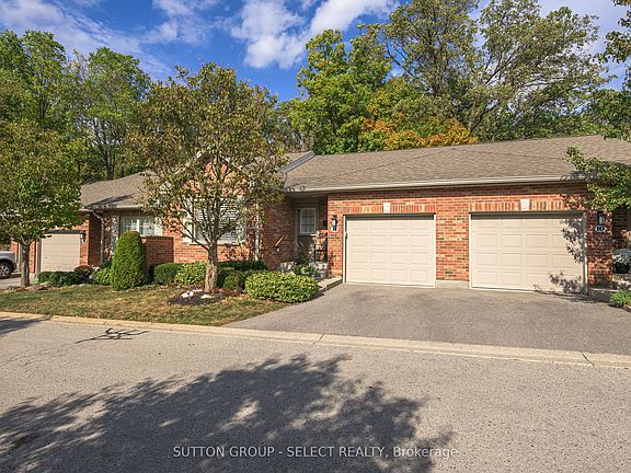 Tucked quietly at the. back of the coveted Byron Woods enclave, this forest-backed bungalow feels like a secret escape in the heart of the village. Morning light filters through the trees, birds chatter in the canopy, and the only other sound you'll hear from the covered deck is the breeze moving through the leaves. It's hard to believe you're just a short walk to Byron's shops, cafés, and the trails of Springbank Park along the Thames River. Inside, over $120,000 in thoughtful upgrades have transformed the space with timeless style including upgraded interior doors, baseboards and casings, hardwood and tile floors, updated lighting, and three beautifully renewed bathrooms. The kitchen shines with quartz counters, an iridescent porcelain mosaic backsplash, stainless appliances, and a skylight that floods the space with sunshine. The open-concept living and dining area centers around a romantic gas fireplace and lush forest views, creating a sense of calm that continues throughout the home. The main level offers a tranquil primary bedroom with walkout access to the deck, a beautifully renovated ensuite with walk-in shower, a versatile second bedroom or office, a second renovated full bath, and convenient main-floor laundry. Downstairs, the walkout lower level feels equally inviting with large windows, a family room wrapped in custom built-ins, an integrated projector and screen for movie nights, a bright guest bedroom, an updated 3-piece bath with tile walk-in shower, and plenty of storage. Step outside to your private patio and enjoy the dappled light of the woods. With an attached garage and carefree condo living, this rare forest-side home offers the best of Byron, steps from Springbank Park, minutes to Boler Mountain, Riverbend Golf, and the London Hunt & Country Club. A lifestyle as peaceful as it is connected.