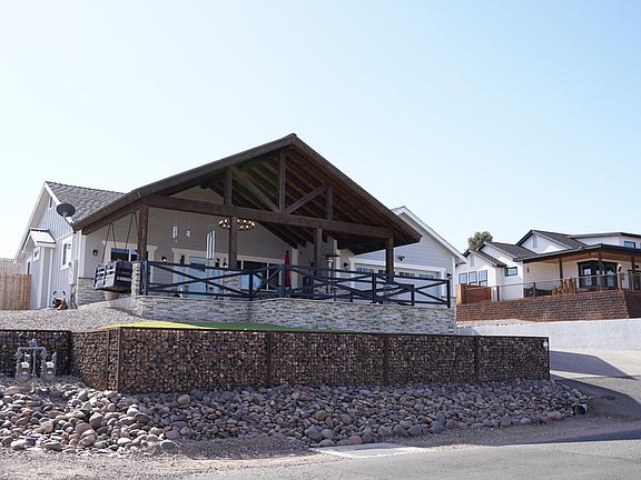 Beautiful and spacious 2022 3 bed 2 bath home for sale in the heart of Cottonwood, Arizona, near all the amenities and NO HOA! Get cozy and enjoy gorgeous Sedona red rock, mountain views and the best sunsets Arizona has to offer on a spacious covered front porch. The unique landscape features custom metal work railing, stone-filled gabion baskets as well as artificial turf.