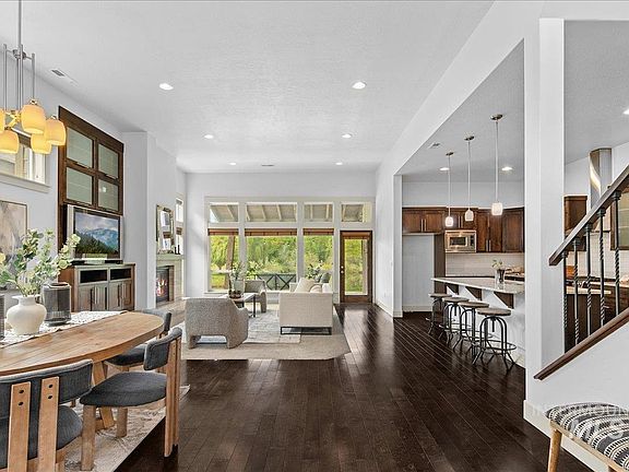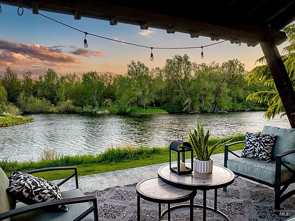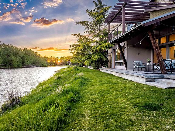 Welcome to one of the most premier waterfront lots in all of Eagle. Tucked in a quiet, maintenance-free community just minutes from downtown, this property offers unobstructed views of a serene pond with nothing but protected nature between you and the Boise River—land that can never be built on. Whether enjoying the covered patio or the private upstairs balcony, the views are timeless and breathtaking. The home itself features a main-level owner’s suite and guest bedroom, with a third bedroom, bonus room, and walkout balcony upstairs. along with a 3 Car tandem Garage. This rare offering combines a beautifully designed home with an irreplaceable setting—providing privacy, natural beauty, direct access to the Boise Greenbelt, and the best of Eagle living. This is more than a home; it’s a one-of-a-kind lifestyle on the water.