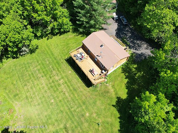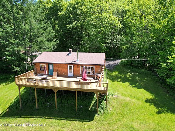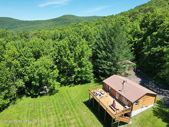 Escape to your PRIVATE SANCTUARY with this immaculate three-bedroom, two-bathroom LOG HOME nestled on 9 acres of SERENE, PROTECTED LAND. This picturesque property offers unparalleled PRIVACY and TRANQUILITY, perfect for those seeking a retreat from the hustle and bustle. The home features an OPEN CONCEPT living/dining and kitchen area with RUSTIC COUNTRY CHARM. Open BEAMED CEILINGS, HARDWOOD FLOORS and a WOOD BURNING STOVE add to the ambiance. The main level has an intuitive living area with two bedrooms and a full bath. Downstairs is a rec room, full bathroom and laundry room. Step outside to discover a LARGE ENTERTAINING DECK, perfect for gatherings and summer BBQs. The property also includes a spring fed POND, ATV TRAILS AND FIRE-PIT which adds to it's appeal. An oversized DETACHED TWO CAR GARAGE offers plenty of storage and workspace, plenty of space for those RECREATIONAL toys. SURROUNDED by protected FOREVER WILD DEP land on three sides, this home promises a life of SECLUSION and NATURAL BEAUTY. Don't miss this rare opportunity to own a slice of protected paradise! About 2.5 hours from NYC and close to restaurants, skiing, quaint Catskill villages and more!