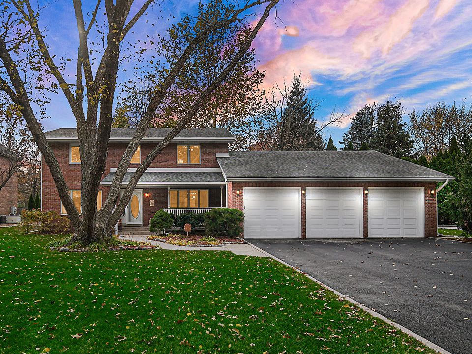 First Time Offering in Briar Ridge Country Club! Now is your chance to own this elegant four bedroom three bathroom home that spans over 3,000 sqft of finished living area. Built in one of the most coveted locations within this private, gated community, this property combines luxury, convenience, and serene surroundings. This property is surrounded by mature trees and beautiful landscaping with an automated irrigation system. Enjoy peaceful views from the newly built wooden deck, accessed through French patio doors, or sit back and relax on the welcoming front covered porch. High vaulted ceilings enhance the spaciousness of the kitchen, dining, and living areas. A floor-to-ceiling brick, electric fireplace with ample seating, offers cozy warmth and ambiance. An abundance of oversized windows illuminate the living spaces. At the heart of the kitchen, you will notice an impressive, extra-large island, perfect for meal prep, entertaining, and gathering. The kitchen is also equipped with stainless steel appliances, ample oak cabinetry, and true Maplewood flooring that flows into the dining area, creating a warm and inviting atmosphere. Four generously sized bedrooms upstairs feature exceptionally large closets. Additional storage in the hallway add convenience, making this home ideal for anyone in need of extra space. The finished, carpeted, and insulated basement provides even more living space, with a large playroom that's perfect for recreation or hobbies. A second room that is ideal for that home office or guest room. The insulated 3-car garage, boasts comfort and efficiency year-round. A spacious laundry room and a PRE INSPECTION ensure the home is move-in ready. Close to the clubhouse, pool, golf course, bike trails, shopping, dining, and major highways, this home offers the best of privacy and accessibility. This remarkable property provides expansive living, distinctive finishes, and a premium location. Don't miss your opportunity to view this home!