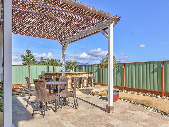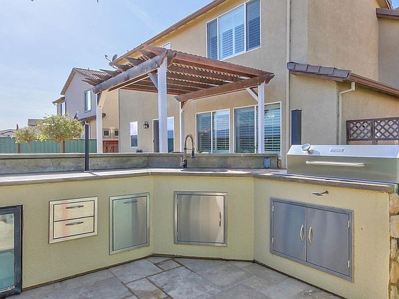 This Home is the Entertainment Model! Featuring a fully equipped Outdoor Kitchen & Bar with 4-5 stools at the Rock Bar; serve up ice cold drinks on the concrete bar top (with NO coasters) from the stainless steel refrigerator, while you BBQ the Tri-Tip on your custom Charcoal Grill & Smoker w/searing plate, stainless grilling grates, storage drawers & large sink w/ faucet to wash the vegetables from your own garden! Dine AlFresco on one of the enormous paver tiled Patios beneath the Pergola & RELAX. Featuring Stucco exterior, concrete shake roof, Formal dining room & Separate Family room, Living/Dining combo w/ large island breakfast, granite countertops & stainless appliances plus the bonus ... A Luxurious Master suite! Easy landscaping, 12x45' Dog Run/Kennel on concrete pad w/a drain ;0) Vivian Security system w/ 2 cameras, glass break & window/door sensors, keypad entry deadbolt.