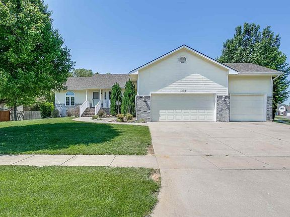 SPACIOUS 6 BEDROOM, 3.5 BATH HOME IN THE SOUGHT AFTER CITY OF DERBY. FEATURING A LARGE CORNER LOT, A GORGEOUS LAKEFRONT VIEW, AND TONS OF SQUARE FOOTAGE, THIS HOME IS A MUST SEE! RECENTLY UPDATED KITCHEN INCLUDES ALL APPLIANCES AND FEATURES A GREAT PANTRY, AN EATING BAR, A 10X12 EATING SPACE, ACCESS TO A PRIVATE DECK, AND A DESK*FORMAL DINING ROOM HAS A BAY WINDOW AND A STUNNING VIEW OF THE LAKE*BRIGHT LIVING ROOM FEATURES A WOOD BURNING FIREPLACE WITH A GAS STARTER AND PLENTY OF SPACE*SPLIT BEDROOM PLAN! SECLUDED MASTER SUITE BOASTS A WALK IN CLOSET, DECK ACCESS, AND A FULL BATH WITH HIS AND HER SINKS AND A JACUZZI TUB*TWO ADDITIONAL BEDROOMS AND A FULL BATH COMPLETE THE MAIN LEVEL*FINISHED BASEMENT FEATURES A GENEROUS RECREATION ROOM, A SECOND FIREPLACE, 3 MORE BEDROOMS, A FULL BATH, A HALF BATH, AND TONS OF STORAGE*IMMENSE UPDATES WITHIN THE LAST 10 YEARS INCLUDE: 30 YEAR LAMINATED ARCHITECTURAL ROOF, PELLA WINDOWS, ALL EXTERIOR DOORS, HOT WATER HEATER, FURNACE, MANI-BLOCK SYSTEM FOR THE PLUMBING, WATER SOFTENER, AND KITCHEN COUNTERTOPS, BACKSPLASH, AND FLOORING*CONVENIENTLY LOCATED WITH QUICK ACCESS TO K-15 AND ROCK ROAD, YOU DON'T WANT TO MISS THIS HOME!
