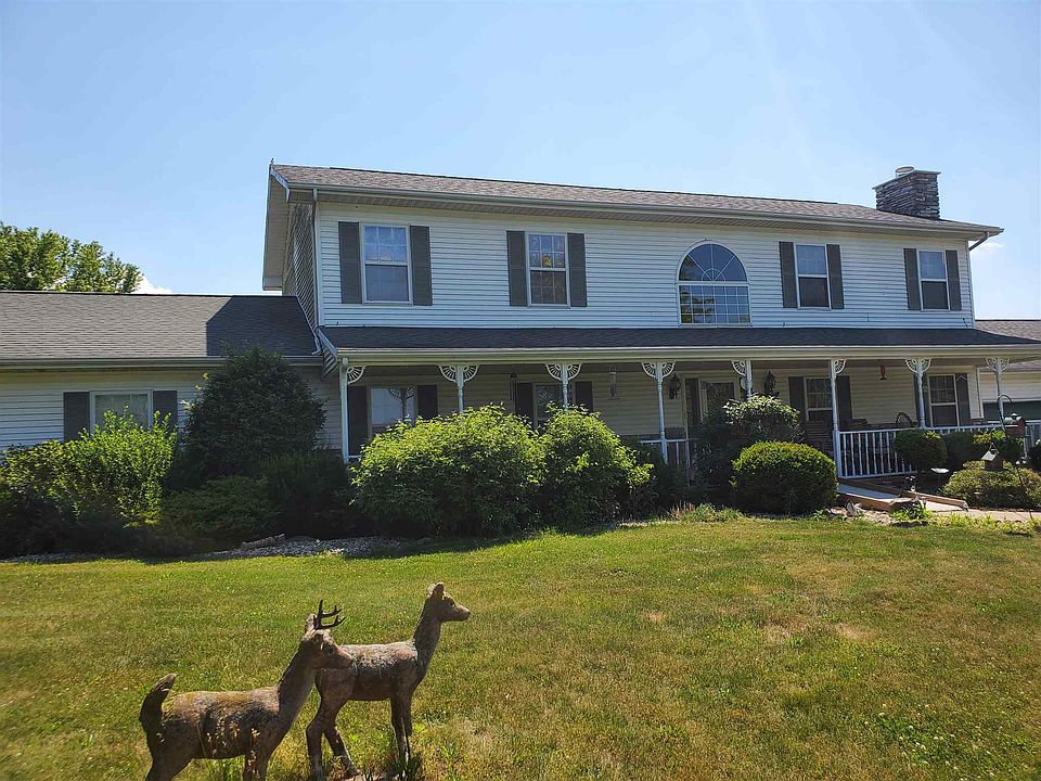 Take this grand driveway up to a beautiful country 2 story home on 6 acres. Sit outside and relax on the covered front porch to enjoy the beautiful landscaping! Backyard deck looks out to the fenced inground pool with gazebo plus 2 ponds! One is fully stocked with catfish, bluegill, and bass. Home has large eat in kitchen with high end appliances, sunroom, gathering room with fireplace, huge living and dining room. Main floor laundry room across from a 1/2 bath.Two master suites with walk in closets and full baths, plus 3 bedrooms. Extra room can be used as office or bedroom. The full unfinished basement awaits your personal touch. Don't delay, schedule your showing today!