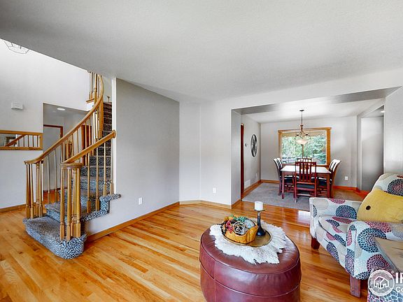 Coveted Oakridge 4bd/4ba home with recently finished basement! Ideal location in Oakridge- off Harmony corridor! Located on a quiet tree lined street backing to a quiet cul de sac. Walk or bike to nearby Top rated PSD schools, health club, grocery stores, restaurants, parks, Power Trail, golf & more! Main floor has living & great room with cozy gas FP which opens to eat-in kitchen, plus separate dining room & main floor OR NEW basement laundry area. All hardwood on main level & stunning sun room surrounded by windows to take in the beautifully landscaped & spacious back yard! Backyard features a lovely huge covered patio & newly constructed raised beds for gardening.Head up the grand staircase to find a spacious primary suite 5-piece bath walk in closet, plus 3 additional spacious bedrooms & full bathroom with double sinks! BRAND NEW basement boasts either 5th BR or great multi-purpose room & new carpet! 3/4 NEW bath with additional laundry area. Great for multi-generational living!