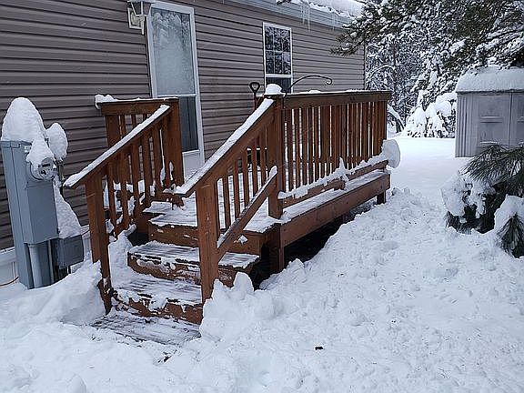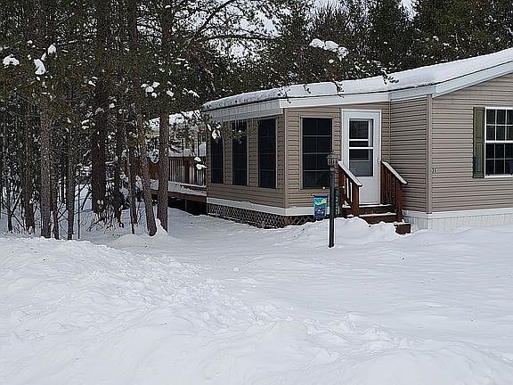 This 2 bed, 2 bath move-in ready home is located in peaceful Pinewood Village (formerly known as Breezy Pines) and offers approximately 1,400 sq ft of living space, with an attached 1 car garage. Boasts an open concept kitchen/dining/living area with cathedral ceilings, and a split bedroom/bathroom floor plan offering welcome privacy. Large kitchen provides plenty of storage, with stunning countertops and cabinets with easy access pull-out shelves. There is an entry way closet and separate laundry room which houses the electric panel, furnace and hot water heater. Newer shingled roof. The 8'x16' enclosed addition provides the main entrance to the home and acts as a perfect mudroom, extra space for your deep freezer, or additional seating area. Large 8'x25' walk-out side deck provides the perfect spot for grilling, bird watching or relaxing in this serene community. Don't miss out on this opportunity! Contact us today for a showing!
