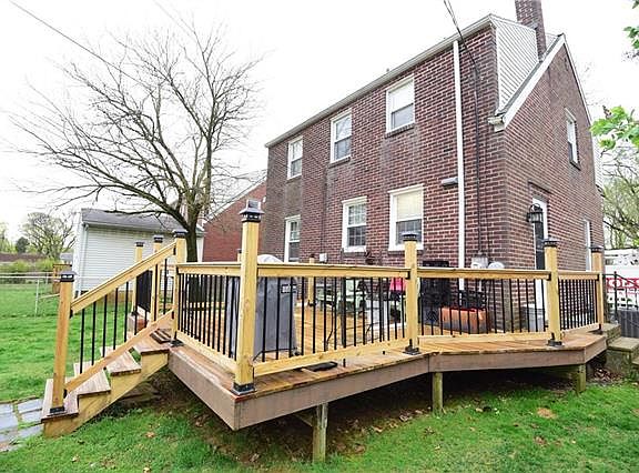Midway Manor 2-bedroom brick cape has a lot to offer. The roof was replaced in 2014; Heating system installed in 2006; New A/C installed in 2013; Heat and A/C are serviced annually; All of the windows on the 2nd floor are new; Large deck off the back of the house leading to a large, fenced in yard with a storage shed. Inside there are hardwood floors throughout and the updated kitchen features stainless steel appliances, tile floors and a tile back-splash. The refrigerator stays with the house. On the second floor there are two bedrooms that are larger than most. The tax record shows the house as a 3 bedroom; however it was converted to a 2 bedroom so the bedrooms are very large. The master has a large walk-in closet. Also on the second floor is a full bath with tile flooring.The basement has two rooms. One side is finished with a full bath; the other side is a utility room with workshop and laundry area. Washer and Drier as well as the refrigerator stay with the house.