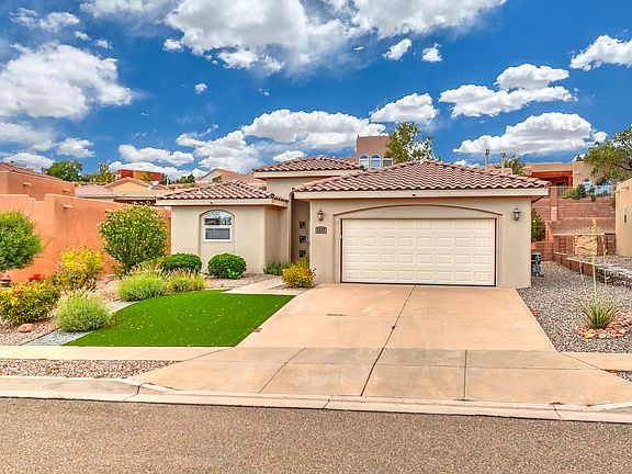Location, Location! In the highly sought after Trinity Estates, an established and manicured, quaint neighborhood very close to Intel. Open concept w/natural light and arched hallways. Kitchen boasts granite counters, pantry, and a Jenn Air high-end fridge. LR features gas fireplace, windows w/shutters. 3bdrms with tasteful neutral color scheme, full guest bath w/skylight. Great storage w/a walk-in linen closet, laundry rm and generous sized 2 car garage. Primary bdrm has walk-in closet & corner windows. Backyard has T&G patio cover w/ceiling fan & beautiful mature yard w/landscaping, drip system & gas stub for grilling. Did I mention refrigerated AC and zero carpet throughout! Home is spotless & move-in ready! Close to ABQ, shopping, restaurants & grocery. No HOA *Under Contract*