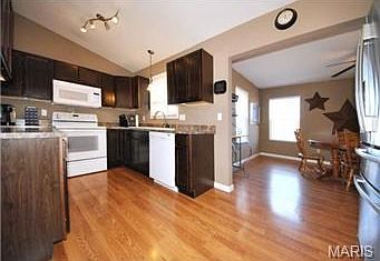 This inviting ranch residence features a wide open floorplan you'll instantly enjoy. The moment you step inside you'll notice a soaring cathedral ceiling stretching above the main living spaces of the living room, dining room & kitchen. The updated eat-in kitchen is a chef's delight & includes ample custom cabinetry. Retire in style to the generously sized main floor master bedroom with a tall vaulted ceiling + his & hers closets. The finished lower level is a noteworthy expansion to your functional space with a huge recreation room & a separate nice-sized sitting/multi-purpose room. Everyone will appreciate the big level privacy fenced backyard that is ideal for kids & pets to run & play. There is also an attached garage & an expanded driv