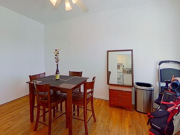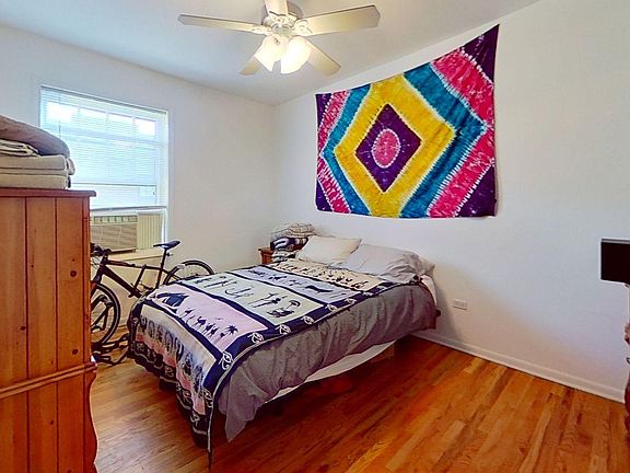This top floor Wrigleyville one bedroom features hardwood floors, formal living and dining rooms, dishwasher kitchen, and radiator heat.