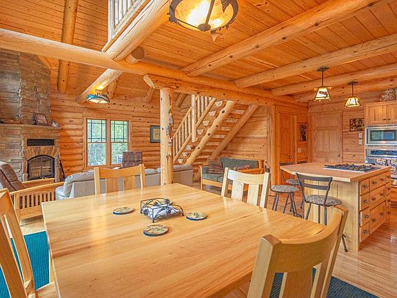 Beautiful log home on the edge of the Boundary Waters Canoe Area. The cabin features high quality finishings – from a fieldstone fireplace to stainless appliances – you will be very comfortable enjoying “cabin life up-north”. The open concept living, dining, and kitchen offers hickory wood flooring, custom hickory cabinetry, and floor to ceiling windows and doors offering phenomenal lake views. Main floor master bedroom, ¾ bath with fine fixtures and laundry. Upper loft features another ½ bath, rec area, office space, and a bedroom. All this on a gently sloped lot with 300 +/- feet of shoreline, 2 docks, swim raft, and storage shed. Partially furnished. *SLLS*