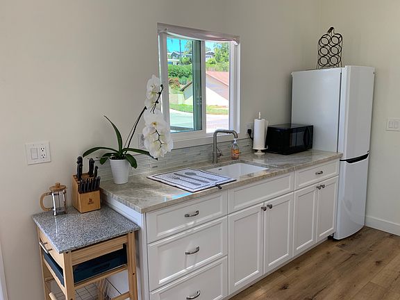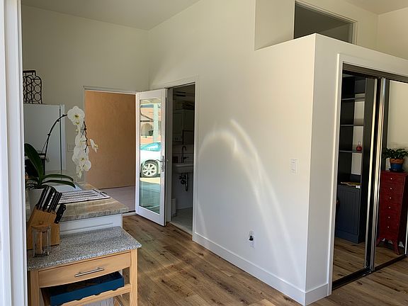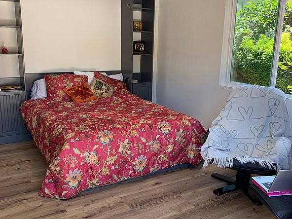 Private studio with its own washer, dryer, fridge, bathroom, A/C unit and microwave. French doors open to front patio area with limited privacy and ample space for outdoor furniture. Newer construction and nice details including kitchenette with window view of front yard. Utilities except internet is included in the rent. No smoking of any kind, no pets