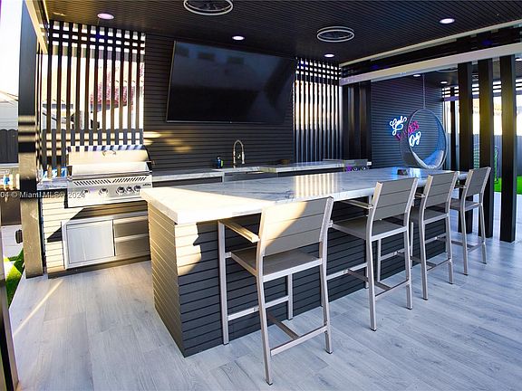 Stunning one-story modern home situated on a spacious 8, 800 s/f lot, complete with a 1-car garage and a driveway made of durable concrete slabs. This luxurious home boasts a total of 3, 227 s/f with 4 bedrooms & 4 bathrooms. The 36x36 porcelain floors create a seamless flow between the open-concept living spaces, while the frameless doors and impact glass windows provide an abundance of natural light and stunning views of the outdoors. The gourmet kitchen features top-of-the-line stainless steel appliances, including a 36x72 refrigerator, a microwave/wall oven, a 36-inch cooktop, and a kitchen hood. The backyard is an entertainer's paradise, featuring a 12x30 pool and spa with a salt system, pool heater, ample space for a boat, making it perfect for water enthusiasts.