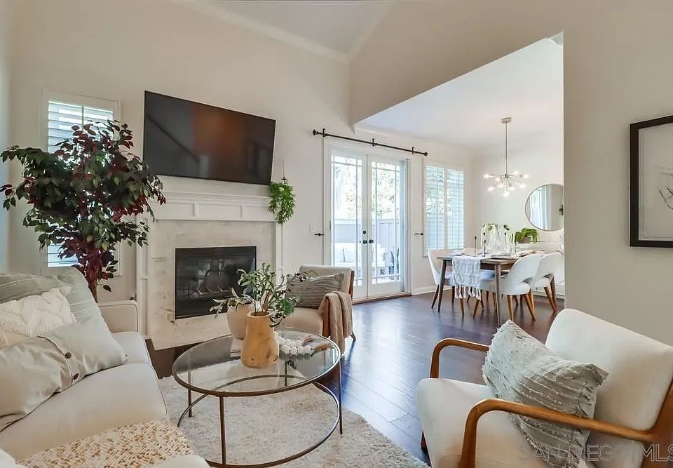 Gorgeous Townhome that shows like a model in sought after Carmel Valley! This beautiful Pacifica townhome is located on the greenbelt which provides quiet and solitude. Great location! This home boasts hardwood floors and upgraded baseboards throughout, travertine floors at kitchen and second floor bathrooms, plantation shutters, French doors to back patio, crown moulding, upgraded fireplace surround, brand new air conditioner, and fresh interior paint throughout.
