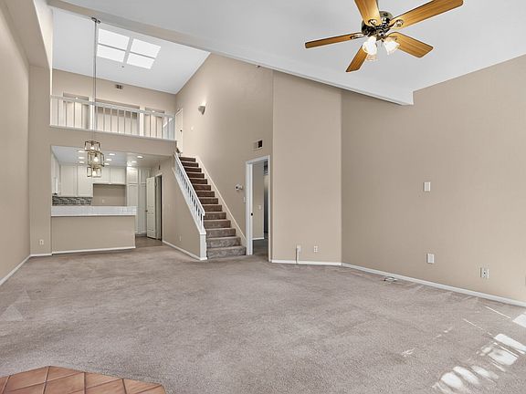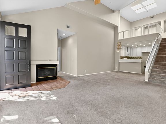 Welcome to this beautifully maintained 2-bedroom, 2-bathroom loft-style townhome located in the highly desirable Tustin Ranch community of Arcada. This light-filled home features high ceilings, recessed lighting, ceiling fans, and an abundance of natural light throughout. The spacious loft area offers flexible use as an office, guest space, or cozy retreat. Enjoy a charming balcony, a warm fireplace, and well-sized closets and rooms for comfortable living. The kitchen showcases white cabinetry with matching white appliances, including a stove, dishwasher, and microwave, perfectly complementing the home's fresh white paint. Additional highlights include an in-unit laundry room with washer and dryer hookups and a rare direct-access 2-car garage standout feature in this community. Recently painted and ready for immediate move-in, this home sits within the smoke-free Arcada community, which offers resort-style amenities including a sparkling pool, relaxing hot tub, picnic area, and built-in BBQ's ideal for enjoying sunny California days. No pets or smokers per owner.