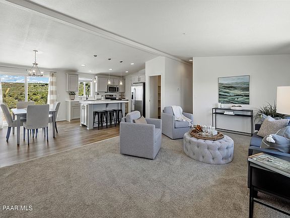 NEW CONSTRUCTION situated on 1.03 of an acre. WOW! WOW! WOW! Absolutely GORGEOUS views!!!This home offers an open concept, split floor plan, 3 bedrooms, 2 baths. The incredible kitchen has wood cabinetry, solid surfaces, stainless steel appliances ,a farm sink and A HUGE walk in pantry. The sliding glass doors provides easy access to the backyard. The spacious master bedroom has his and hers closets. The master bathroom offers separate vanities, tub ,shower, a private water closet and storage.Experience the best of both worlds. Quiet rural neighborhood yet 25 minutes away from shopping and amenities in Prescott Valley. You will fall in love with this home!!!!