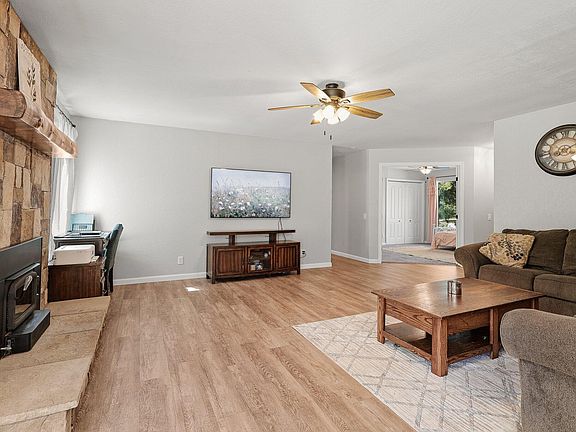 Beautifully updated 3-bedroom, 2-bath home located on a quiet, dead-end street. Thoughtful custom upgrades throughout include a fully renovated kitchen and bathrooms, newer windows, fresh interior and exterior paint, updated flooring, and a newer HVAC system with upgraded ducting. The inviting living area features a cozy woodstove with custom stone surround, creating a warm and stylish focal point. Enjoy outdoor living from the covered back patio overlooking the spacious, usable land—perfect for gardening, play, or entertaining. A rare blend of comfort, privacy, and quality craftsmanship in a peaceful setting not far from the Lake.