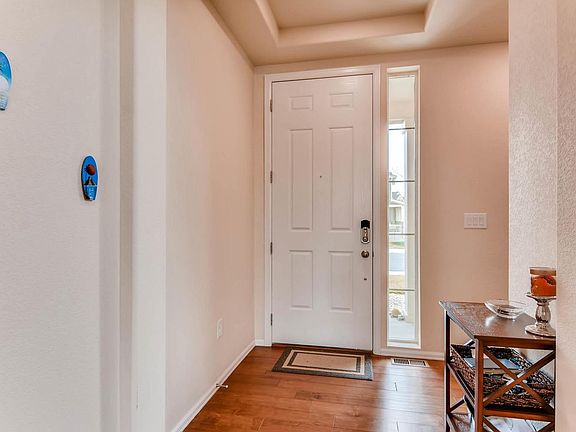 Welcome home! This beautiful Lennar solar home features a very open and spacious floorplan, including many upgrades. The main level of the home is open and cozy with beautiful wide plank hardwood flooring in the entryway and kitchen. The gourmet kitchen boasts granite counter tops, with an oversized island, stainless steel appliances and a walk in pantry for ample storage. The kitchen flows into the large family room with a gas fireplace and big windows for natural light. The upstairs includes a master suite, two additional bedrooms with a Jack n Jill Bathroom and the laundry room. The master suite features a coffered ceiling, grand 5-piece bath with dual sinks, private oversized shower and garden tub as well as a large walk in closet. This home is tastefully decorated with updated paint, tile, flooring and nice open backyard on a corner lot. Save money with a solar lease transferred at closing to new buyer. This house is a must-see and has all the luxuries of a new build.