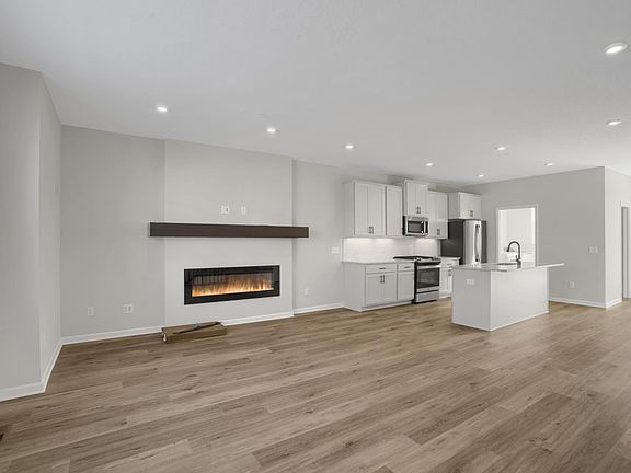 COMPLETED NEW CONSTRUCTION - This Afton floorplan impresses with its spacious entry from the garage, with a walk-out and closet for coats and shoes. The main level features an open-concept layout with a sleek fireplace in the family room, a modern galley kitchen with pantry space, a spacious outdoor deck, and a laundry room. All 3 bedrooms are located on the upper level and feature a spacious owner's suite with attached bath and huge walk-in closet. Designer-selected finishes seen throughout marking the latest design trends. This home is located in a stunning community near Maple Grove's amenities and behind Elm Creek Park Reserve.
