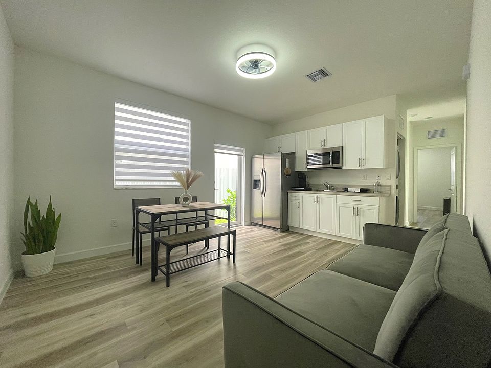 1/1 Unit for rent - attached to single family home. 1/1 features 2 private entrances, living room, bedroom, private bathroom, washer & dryer in unit. Unit is fully furnished including couch, dining table w/ seating, recliner, queen size bed with mattress, TV stand in bedroom & living room, run in bedroom, full size stainless steel refrigerator/freezer combo. There is no stove/oven, double burner is provided as well as microwave. Windows have accordion shutters. Utilities & wifi included in monthly rental rate. Restrictions: no pets, no smoking, no illegal substance use. To submit an application: Photo ID, credit & background application, background check from local police station, proof of income/employment. Located near schools, shopping plazas, grocery stores. No smoking, no use of illegal substances, no pets, no parties/gatherings, limit one vehicle. No modifications to the property (painting, remodeling). 6month-1 year lease available.